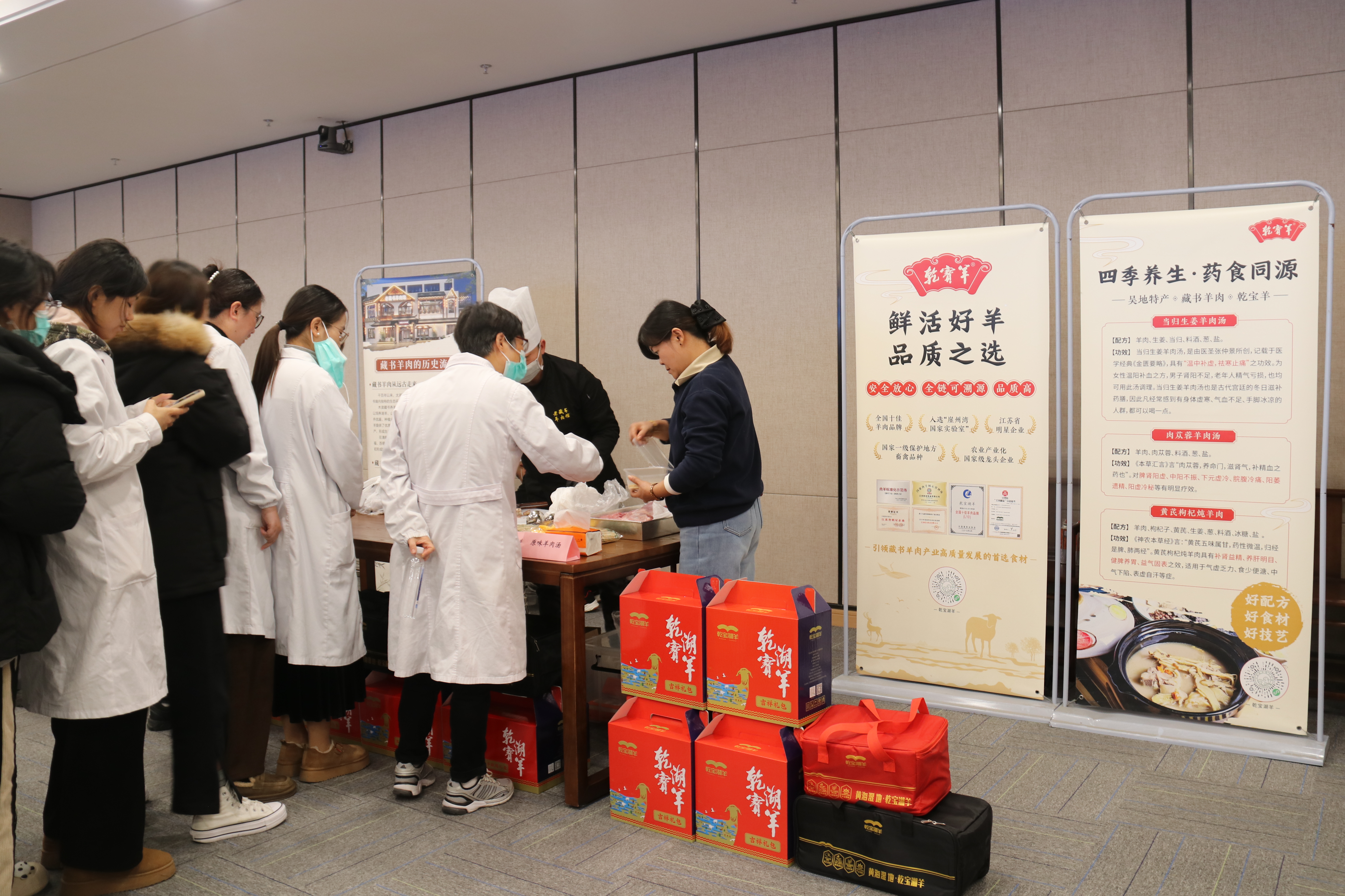 在藥膳展示與品嘗環(huán)節(jié),尤其值得關(guān)注的是,應(yīng)邀參加展示的江蘇乾寶集團(tuán)、藏書羊肉協(xié)會(huì),聯(lián)合吳門醫(yī)派傳承人合作研發(fā)的藏書-乾寶羊肉藥食同源“四季養(yǎng)生”之冬季食養(yǎng)產(chǎn)品,備受現(xiàn)場(chǎng)觀眾喜愛?;顒?dòng)現(xiàn)場(chǎng),該展示產(chǎn)品吸引了眾多目光。其中,傳統(tǒng)的藏書羊肉湯、藏書羊糕、當(dāng)歸生姜羊肉湯、肉蓯蓉羊肉湯、黃芪枸杞燉羊肉等多款產(chǎn)品,憑借其獨(dú)特的口感、豐富的養(yǎng)生功效,贏得了現(xiàn)場(chǎng)觀眾的青睞。展位前,前來(lái)爭(zhēng)相品嘗的觀眾絡(luò)繹不絕,有的甚至多次排隊(duì)駐足體驗(yàn)品鑒,對(duì)有別于傳統(tǒng)藏書羊肉風(fēng)味的藏書-乾寶羊肉藥食同源冬季養(yǎng)生展品贊不絕口。直到中午展示活動(dòng)結(jié)束時(shí),依然還有許多觀眾意猶未盡,流連忘返。